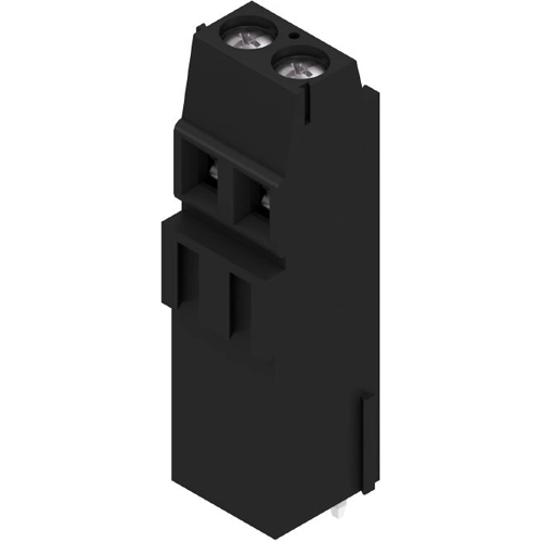 Einreihige Leiterplattenklemme in niedriger und hoher Bauform mit bewährtem Zugbügelanschluss im Raster 5,08 mm, Leiterabgangsrichtung in 90° Ausführung. Für Leiterquerschnitte bis 2,5 mm² geeignet.