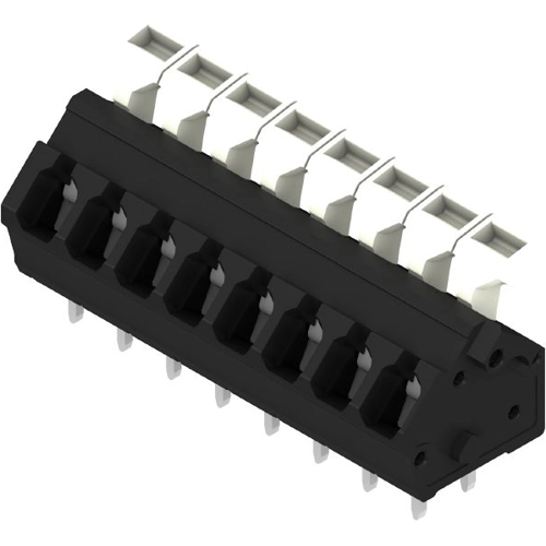 Leiterplattenklemme, 5.00 mm, Polzahl: 8, 135°, Lötstiftlänge (l): 3.5 mm, verzinnt, schwarz, Zugfederanschluss mit Betätigungselement, Klemmbereich, max.: 2.5 mm², Box.