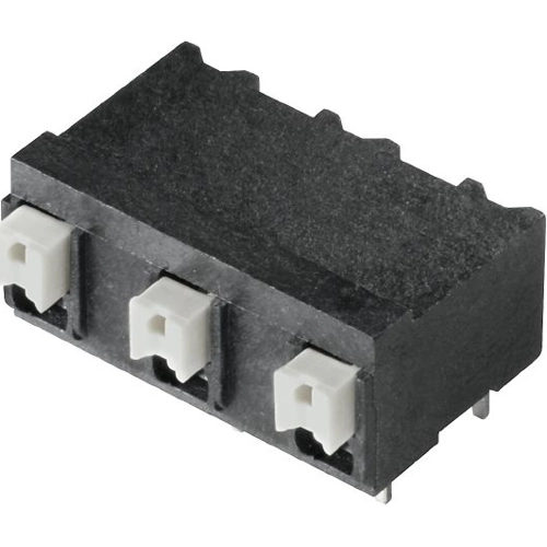 Vollautomatisch bestückbare Leiterplattenklemme für den Reflowprozess (SMT), mit Push In Leiteranschlusstechnik. Leiteranschluss und Betätigungsrichtung des Schiebers aus einer Richtung (TOP).