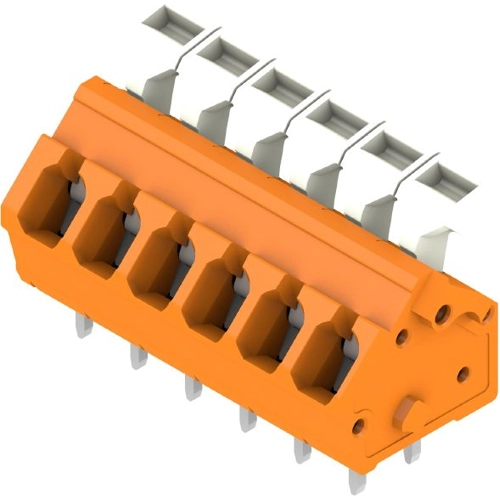Leiterplattenklemme, 5.00 mm, Polzahl: 6, 135°, Lötstiftlänge (l): 3.5 mm, verzinnt, orange, Zugfederanschluss mit Betätigungselement, Klemmbereich, max.: 2.5 mm², Box.