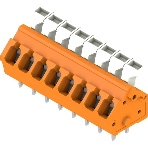 Leiterplattenklemme, 5.00 mm, Polzahl: 8, 135°, Lötstiftlänge (l): 3.5 mm, verzinnt, orange, Zugfederanschluss mit Betätigungselement, Klemmbereich, max.: 2.5 mm², Box.