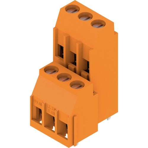 Leiterplattenklemme, 5,08 mm, Polzahl: 6, 90°, Lötstiftlänge (l): 3,2 mm, verzinnt, orange, Zugbügelanschluss, Klemmbereich, max. : 6 mm², Box.