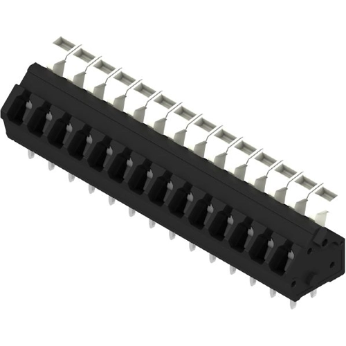 Leiterplattenklemme, 5.00 mm, Polzahl: 14, 135°, Lötstiftlänge (l): 3.5 mm, verzinnt, schwarz, Zugfederanschluss mit Betätigungselement, Klemmbereich, max.: 2.5 mm², Box.