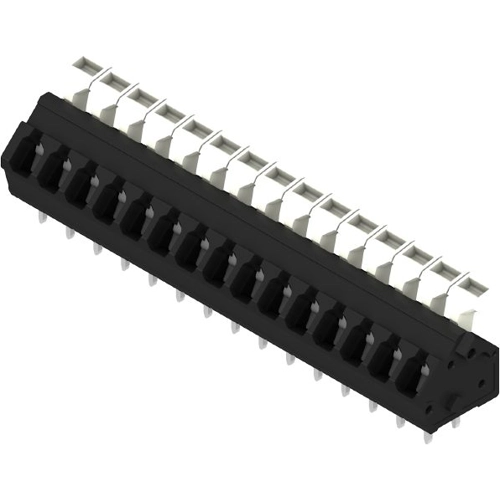 Leiterplattenklemme, 5.00 mm, Polzahl: 15, 135°, Lötstiftlänge (l): 3.5 mm, verzinnt, schwarz, Zugfederanschluss mit Betätigungselement, Klemmbereich, max.: 2.5 mm², Box.