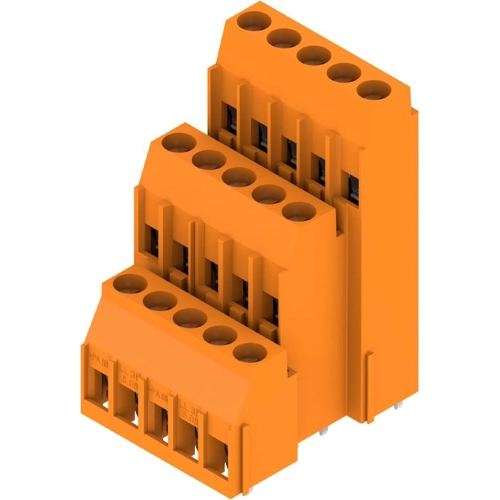 Leiterplattenklemme, 5,08 mm, Polzahl: 15, 90°, Lötstiftlänge (l): 3,2 mm, verzinnt, orange, Zugbügelanschluss, Klemmbereich, max. : 6 mm², Box.