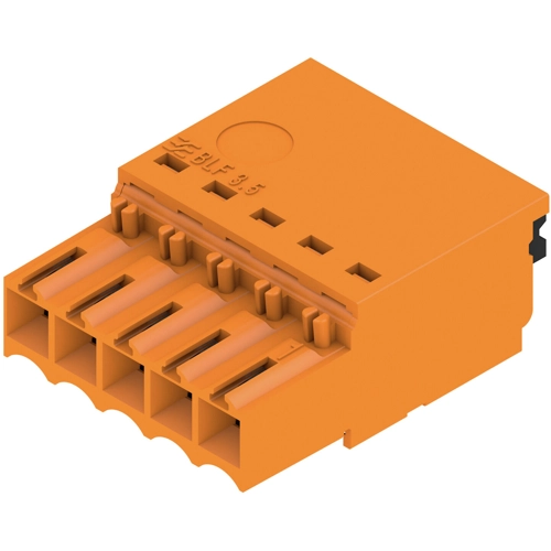 Buchsenstecker mit Federanschluss (Push In) als steckbare Anschlussebene, der Einsatz erfolgt in Verbindung mit der Stiftleiste im Raster 3,50 mm.