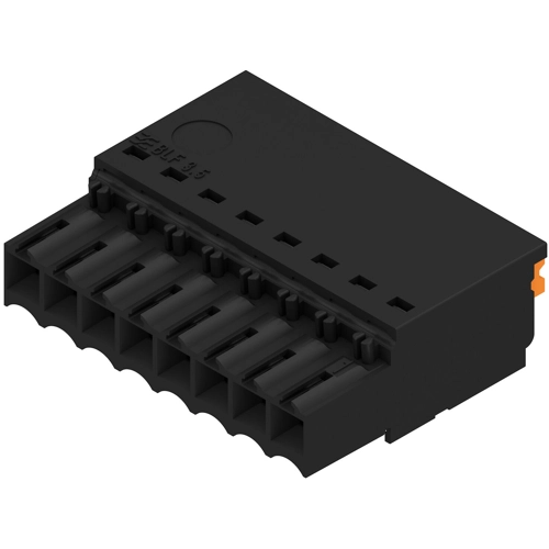 Buchsenstecker mit Federanschluss (Push In) als steckbare Anschlussebene, der Einsatz erfolgt in Verbindung mit der Stiftleiste im Raster 3,50 mm.