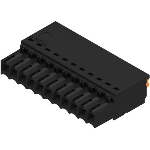 Buchsenstecker mit Federanschluss (Push In) als steckbare Anschlussebene, der Einsatz erfolgt in Verbindung mit der Stiftleiste im Raster 3,50 mm.
