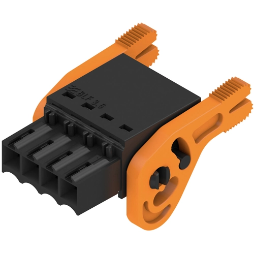 Buchsenstecker mit Federanschluss (Push In) als steckbare Anschlussebene, der Einsatz erfolgt in Verbindung mit der Stiftleiste im Raster 3,50 mm.
