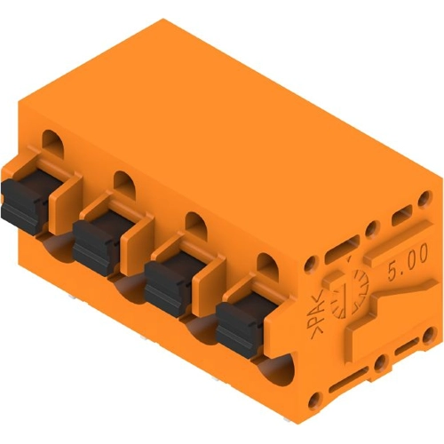 Leiterplattenklemme, 7,50 mm, Polzahl: 4, 90°, Lötstiftlänge (l): 3,5 mm, verzinnt, orange, PUSH IN mit Betätigungstaste, Klemmbereich, max. : 2,5 mm², Box.