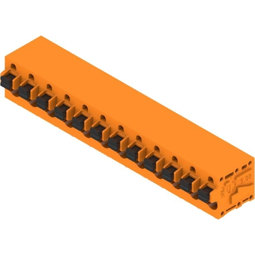 Leiterplattenklemme, 7,50 mm, Polzahl: 12, 90°, Lötstiftlänge (l): 3,5 mm, verzinnt, orange, PUSH IN mit Betätigungstaste, Klemmbereich, max. : 2,5 mm², Box.