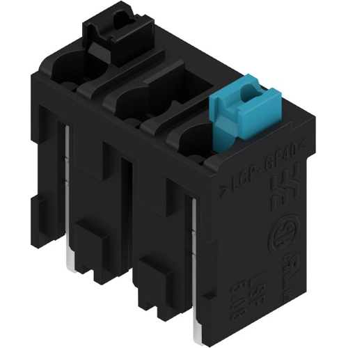 Vollautomatisch bestückbare Leiterplattenklemme für den Reflowprozess (SMT), mit Push In Leiteranschlusstechnik. Leiteranschluss und Betätigungsrichtung des Schiebers aus einer Richtung (TOP).