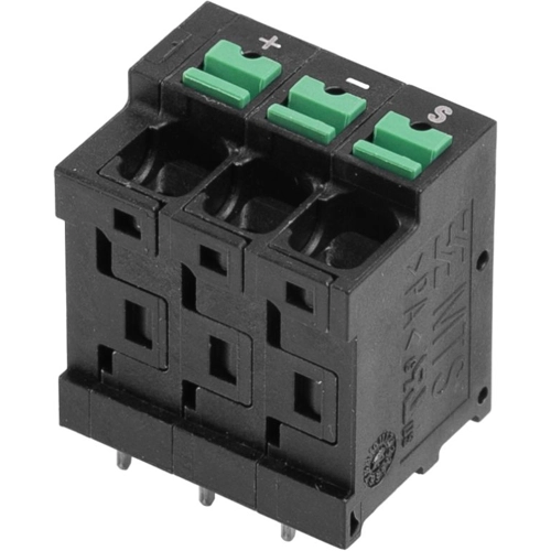 Leiterplattenklemme, Leiterplattenklemme, seitlich geschlossen, THT-Lötanschluss, 5.00 mm, Polzahl: 3, Lötstiftlänge (l): 3.5 mm, verzinnt, schwarz, Tube.