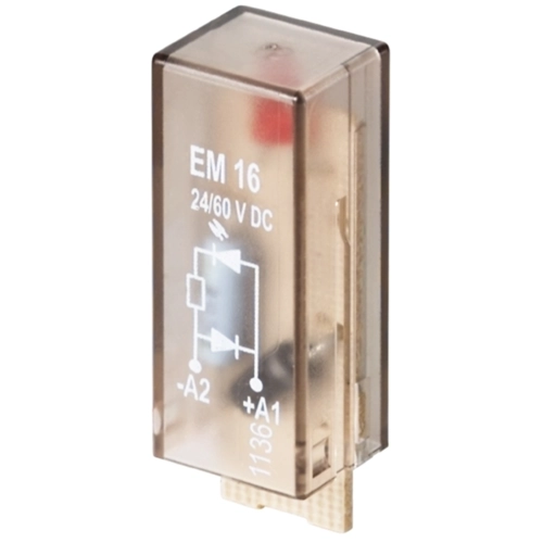 Schutzbeschaltung (Relais), RIDERSERIES, 24-60 V DC, Freilaufdiode, Statusanzeige: LED rot, Das Schutzmodul dient sowohl dem Schutz der Relaiskoppler, als auch der vorgeschalteten Steuerungsbaugruppen.