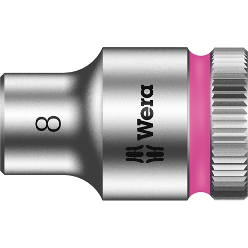 8790 HMB Zyklop-Steckschlüsseleinsatz mit 3/8"-Antrieb, 8.0 mmHand- und Maschinensteckschlüssel-Einsatz (ISO 2725-Teil 3) von Wera ermöglicht einen Einsatz im Hand- und Maschinenbetrieb. Mit "Take it easy" Werkzeugfinder mit Farbkennzeichnung nach Größen - zum einfachen und schnellen Finden des benötigten Werkzeugs. Griffig zum leichten Greifen auch mit öligen Händen. Mit Kugelfangrille. Für Außensechskantschrauben- und muttern. Aus mattverchromtem Chrom-Vanadium.