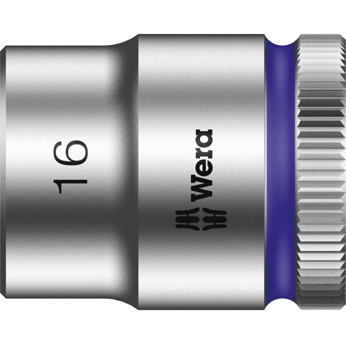 8790 HMB Zyklop-Steckschlüsseleinsatz mit 3/8"-Antrieb, 16.0 mmHand- und Maschinensteckschlüssel-Einsatz (ISO 2725-Teil 3) von Wera ermöglicht einen Einsatz im Hand- und Maschinenbetrieb. Mit "Take it easy" Werkzeugfinder mit Farbkennzeichnung nach Größen - zum einfachen und schnellen Finden des benötigten Werkzeugs. Griffig zum leichten Greifen auch mit öligen Händen. Mit Kugelfangrille. Für Außensechskantschrauben- und muttern. Aus mattverchromtem Chrom-Vanadium.