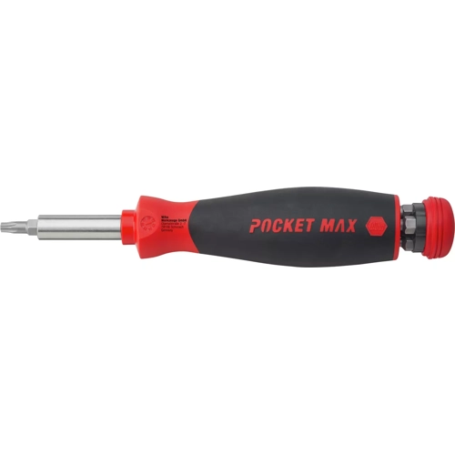Der kompakte und leichte PocketMax von Wiha passt problemlos in jede Hemd- und Hosentasche und ist der ideale Begleiter für jeden Handwerker. Das im Griff sicher verstaute Bitdepot präsentiert sich mit acht Standardbits 1/4" C 6,3, die sowohl für den Hand- als auch für den Maschinenbetrieb verwendet werden können. Dank einer magnetischen Schließfunktion kann das Bitdepot spielend leicht geöffnet werden um die Bits zu entnehmen. Die Suche nach dem richtigen Bit gehört ab sofort der Vergangenheit an. Beim Verschließen gleitet das Bitdepot zielstrebig und leicht in den Schaft zurück und schließt dank dem Magneten so zu sagen von alleine. Die magnetische Bitaufnahme sorgt für einen komfortablen und schnellen Bitwechsel. Ein weiterer Pluspunkt ist die drehbare Kappe, welche eine komfortable Handhabung gewährleistet.