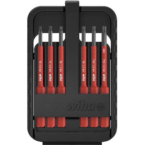 Um tiefliegende Schrauben erreichen zu können, ist der Klingendurchmesser bei herkömmlichen Elektrikerschraubendrehern häufig zu groß. Das Entfernen der Isolierung ist jedoch unzulässig und gefährdet zudem die eigene Sicherheit. Bei der speziell für elektrische Anwendungen entwickelten Wiha slimTECHNOLOGY wurde die Schutzlisolation in die Klinge intergriert, um bis zu 33% schlankere Klingen zu ermöglichen. So können mit den slimBits auch tiefliegende Schraub- und Federelemente mühelos erreicht werden. Die isolierten slimBits werden gemäß der internationalen Norm IEC 60900 einer Stückprüfung unterzogen und ermöglichen ein sicheres Arbeiten im Bereich von spannungsführenden Teilen bis 1.000 V AC. Zudem sind die slimBits in einer smarten Bitbox verstaut, welche eine optimale Einsicht auf die Schraubprofile gewährt.