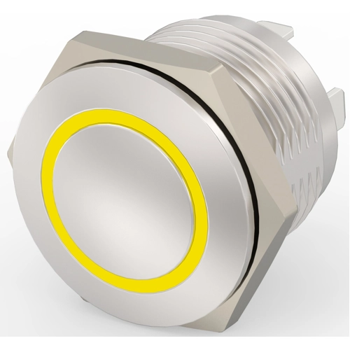 Vandal-proof pushbutton, 1 pole, silver, illuminated (yellow), 0.4 A/36 VDC, mounting Ø 16 mm, IP67, 2213774-5