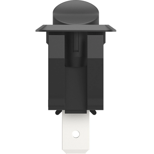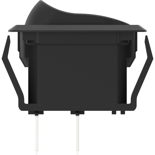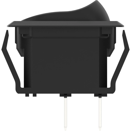 Product Type: Switch, Rocker Switch Type: High Power, Lamp: Without, Rocker Switch LED: Without, Actuator Type: Top, Indicator/Imprint Legend: None, Panel Cutout Size: 13.8 x 27.6 mm, Configuration (Pole-Throw): Single Pole - Single Throw, Operating Function: On Off, Rocker Switch Voltage Rating: 125 VAC, Beveled Frame Color: Black, Actuator Color: Black, Terminal Tab Width: 6.35 mm, Switch Contact Plating Material: Silver, Rocker Switch Contact Current Rating: 16 A, Termination Type: Quick Connect, Mounting Angle: Vertical, Rocker Switch Mounting Type: Panel, Process Sealed: No, UL Listed: File No. E46765
