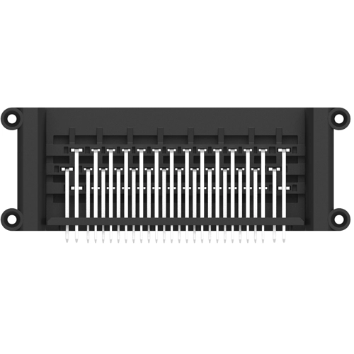 Hybrid header: yes, Connector system: wire-to-board, Sealable: no, Number of signal positions: 42, Number of positions: 42, PCB mount orientation: horizontal, Number of rows: 3, Primary product color: black, Mating tab width: 1.6 mm, 3 mm, Mating tab thickness: 0.6 mm, .8 mm, Contact mating area plating material: tin (Sn), Termination method to printed circuit board: through hole-solder, PCB mount retention type: mounting hole, Centerline (pitch): 4 mm, Product length: 92 mm, Shielded: no, Circuit application: signal, Packaging quantity: 100