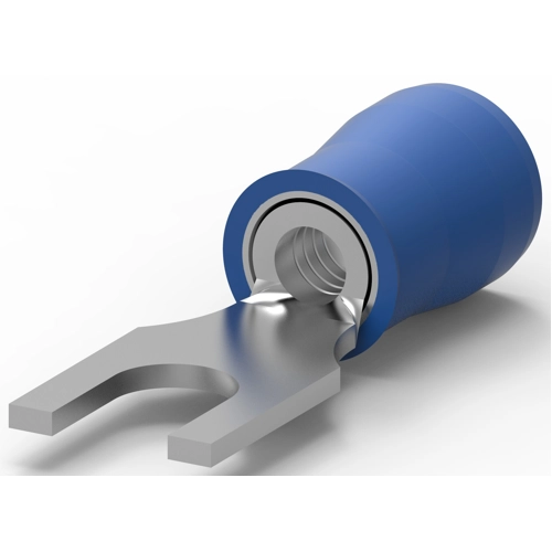 Shape Description: SPADE-020, Ring & Spade Stud Size: M2.5, Ring & Spade Barrel Type: Closed Barrel, Sealable: No, Insulated: Yes, Terminal Angle: Straight, Voltage (Max): 300 V, Inspection Slot: No, Ring & Spade Plating Material: Tin, Terminal & Splice Type: Spade Tongue, Ring & Spade Terminal Orientation: Straight, Wire Insulation Support: With, Wire Size: 16 – 14 AWG, Wire Size: 1.04 – 2.62 mm², Wire Size: 2050 – 5180 CMA, Stud Diameter: 3.02 mm, Tongue Thickness: .79 mm, Insulation Requirement: Partially Insulated, Operating Temperature Range: 105 °C, Heavy Duty: No, Government Qualified: No, Packaging Quantity: 1000, Ring & Spade Packaging Method: Loose Piece, Comment: Available On-Tape for Automatic Termination.