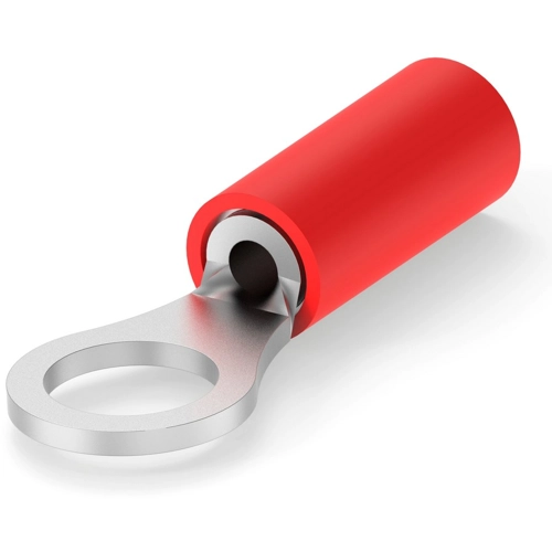 Shape Description: RING-041, Ring & Spade Stud Size: #10, Ring & Spade Barrel Type: Closed Barrel, Sealable: No, Insulated: Yes, Number of Holes: 1, Terminal Angle: Straight, Voltage (Max): 300 V, Weight per Piece: .877 g, Ring & Spade Plating Material: Copper,Tin, Terminal & Splice Type: Ring Tongue, Ring & Spade Terminal Orientation: Offset, Wire Insulation Support: With, Wire Size: 22 – 16 AWG, Wire Size: .3 – 1.42 mm², Wire Size: 509 – 3260 CMA, Stud Diameter: 5 mm, Tongue Thickness: .79 mm, Insulation Requirement: Partially Insulated, Operating Temperature Range: 105 °C, Heavy Duty: No, Government Qualified: No, Packaging Quantity: 5000, Ring & Spade Packaging Method: Tape Mounted
