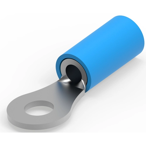 Shape Description: RING-041, Ring & Spade Stud Size: #6,M3.5, Ring & Spade Barrel Type: Closed Barrel, Sealable: No, Insulated: Yes, Number of Holes: 1, Terminal Angle: Straight, Voltage (Max): 300 V, Stripe Color: Blue, Ring & Spade Plating Material: Copper,Tin, Military Part Class: Class II, Terminal & Splice Type: Ring Tongue, Ring & Spade Terminal Orientation: Offset, Wire Insulation Support: With, Wire Size: 16 – 14 AWG, Wire Size: 1.31 – 2.08 mm², Wire Size: 2050 – 5180 CMA, Stud Diameter: 3.68 mm, Tongue Thickness: .79 mm, Insulation Requirement: Partially Insulated, Operating Temperature Range: 105 °C, Heavy Duty: No, Government Qualified: Yes, Packaging Quantity: 5000, Ring & Spade Packaging Method: Tape Mounted
