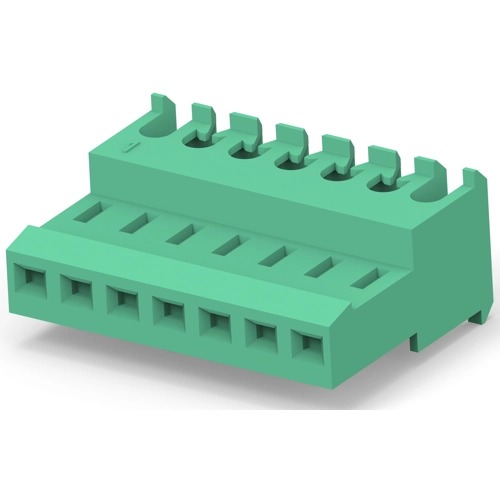 Socket header, 7 pole, pitch 2.54 mm, straight, green, 3-640623-7