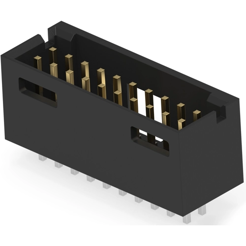 PCB Mount header, Vertical, Board-to-Board, 20 Position, 2.54 mm centerline, Fully shrouded, Gold, Through Hole-Solder.