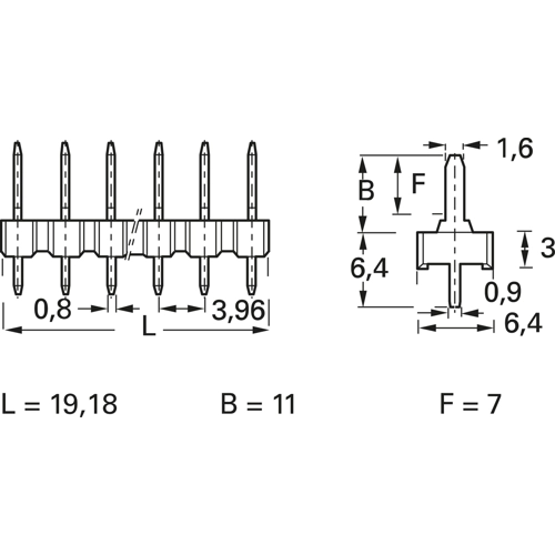 Pins tinned in the contact and solder area; Dimension F: 7.0 mm.