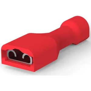 Terminates To: Wire & Cable, Insertion Force: Normal, Sealable: No, Insulated: Yes, Connection Capacity: Single, Voltage (Max): 600 V, Insulation Material: Nylon, Fully Insulated: Yes, Plating Material: Tin, Terminal Type: Receptacle, Terminal & Splice Type: Receptacle, Terminal Orientation: Straight, Contact Base Material: Brass, Crimp Type: F-Crimp, Wire Insulation Support: With, Receptacle Terminal Stock Thickness: 0.41 mm, Wire Size: 22 – 18 AWG, Wire Size: 0.32 -0.82 mm², Mating Tab Width: 4.75 mm, Mating Tab Thickness: 0.81 mm, Operating Temperature Range: -40 – 110 °C, UL Flammability Rating: UL 94V-2, Packaging Quantity: 2700, Packaging Method: Strip/Reel, Barrel Color: Red