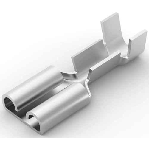 Terminates To: Wire & Cable, Quick Disconnect Insertion Force: Low, Sealable: No, Insulated: No, Connection Capacity: Single, Fully Insulated: No, Quick Disconnect Plating Material: Tin, Terminal Type: Receptacle, Terminal & Splice Type: Receptacle, Quick Disconnect Terminal Orientation: Straight, Contact Base Material: Brass, Crimp Type: F-Crimp, Wire Insulation Support: With, Receptacle Terminal Stock Thickness: 0.43 mm, Wire Size: 18 – 15 AWG, Wire Size: 0.82 – 1.65 mm², Wire Size: 1624 – 3256 CMA, Quick Disconnect Mating Tab Width: 6.35 mm, Insulation Requirement: Uninsulated, Operating Temperature Range: -40 – 110 °C, UL Rating: Listed, Packaging Quantity: 500, Quick Disconnect Packaging Method: Loose Piece/Carton, Line: FASTON .250