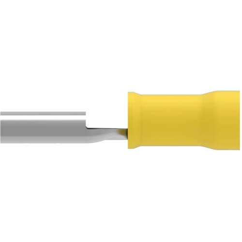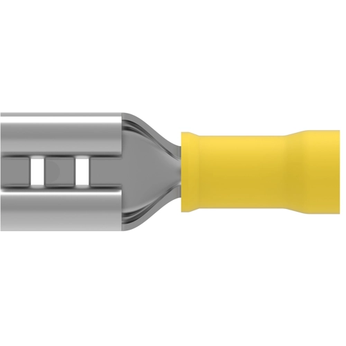 Terminates To: Wire & Cable, Insertion Force: Normal, Sealable: No, Insulated: Yes, Voltage (Max): 300 V, Insulation Material: Nylon, Fully Insulated: No, Plating Material: Tin, Terminal Type: Receptacle, Terminal & Splice Type: Receptacle, Terminal Orientation: Straight, Contact Base Material: Brass, Crimp Type: Compression, Wire Insulation Support: With, Receptacle Terminal Stock Thickness: 0.46 mm, Wire Size: 12 – 10 AWG, Wire Size: 2.62 – 6.64 mm², Wire Size: 5180 – 13100 CMA, Mating Tab Width: 6.35 mm, Operating Temperature Range: 105 °C, RU (UL Component Program): Approved, Packaging Quantity: 500, Packaging Method: Loose Piece, Barrel Color: Yellow