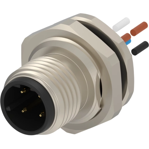 4 Position Circular Connector, Wire-to-Panel, Sealable, Wire & Cable, Signal, Panel Mount, Reverse Gender, Nickel, Copper Alloy, D Code, M12 Connector.