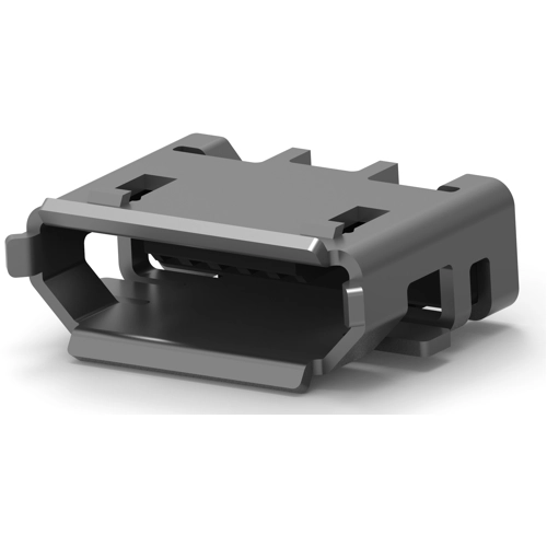 Integral Locking Latch: Without, USB Connector Type: B, USB Version: 2.0, Connector & Housing Type: Receptacle, Connector System: Cable-to-Board, Number of Ports: 1, Number of Positions: 5, Shell Plating Finish: Bright, Connector Profile: Micro, Shell Plating Material: Reflowed Tin over Nickel, Contact Current Rating (Max): 1.8 A, Contact Mating Area Plating Thickness: .76 µm, Termination Method to Printed Circuit Board: Surface Mount, Locating Posts: Without, PCB Mount Location: Top, PCB Connector Seating: Offset, PCB Mount Retention Type: SMT Hold-Down, Panel Mount Feature Type: Flange, Body Orientation: Right Angle, Centerline (Pitch): .65 mm, Housing Color: Black, PCB Thickness (Recommended): .8 – 1. mm, Soldering Temperature (Max): 260 °C, Mating Cycles (Max): 10000, Operating Temperature Range: -30 – 85 °C, Assembly Process Feature: Without Pick and Place Cover, Circuit Application: Power & Signal, UL Flammability Rating: UL 94V-0, Packaging Method: Tape & Reel, Packaging Quantity: 1000