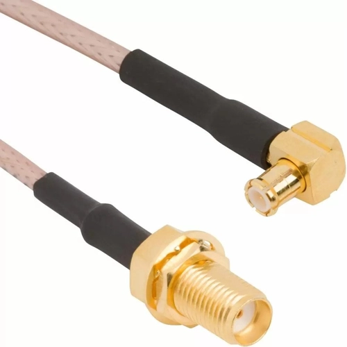 Coaxial cable, MCX plug (angled) to SMA jack (straight), 50 Ω, RG-316, grommet black, 305 mm, 245130-01-12.00