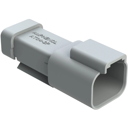 2-Way Receptacle, Male Connector with Reduced Diameter Seal (E-Seal) and End Cap, Grey.