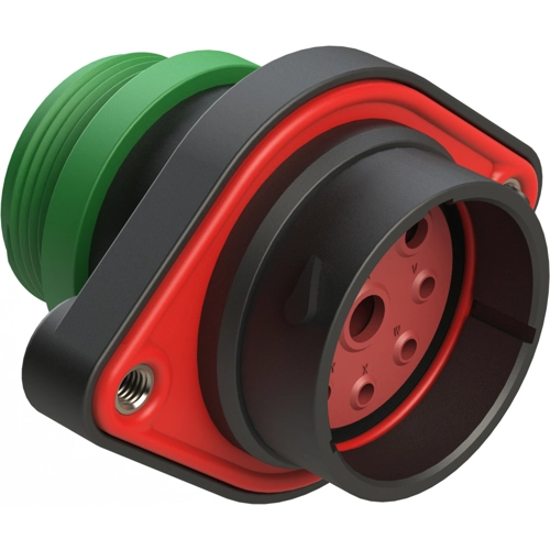 9 Positions, Sealed Panel Mount Receptacle, Pin, Shell Size 24, Normal Diameter Seal (Green Adapter), Small Thread Adapter.