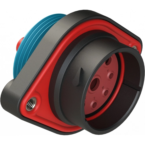 9 Positions, Sealed Panel Mount Receptacle, Pin, Shell Size 24, Reduced Diameter Seal, Wide Thread Adapter.