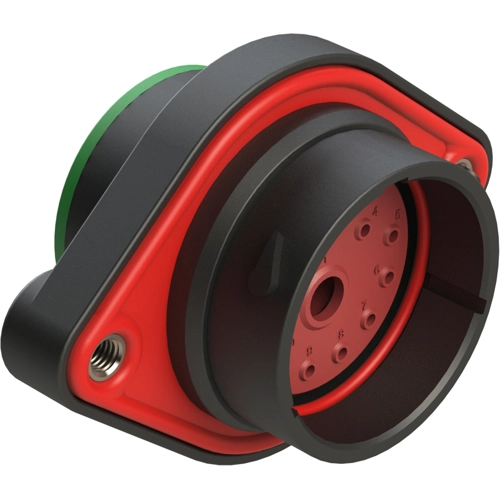 14 Positions, Panel Mount Receptacle, Pin, Shell Size 24, Normal Diameter Seal (Green), Smooth Ring Adapter.