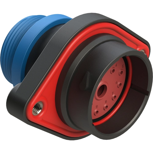 14 Positions, Panel Mount Receptacle, Pin, Shell Size 24, Reduced Diameter Seal (Blue), Small Thread Adapter.