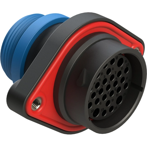 27 Positions Panel Mount Receptacle, Socket, Shell Size 24, Reduced Diameter Seal (Blue), Small Thread Adapter.