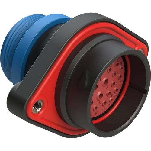 29 Positions, Panel Mount Receptacle, Pin, Shell Size 24, Reduced Diameter Seal (Blue), Small Thread Adapter.