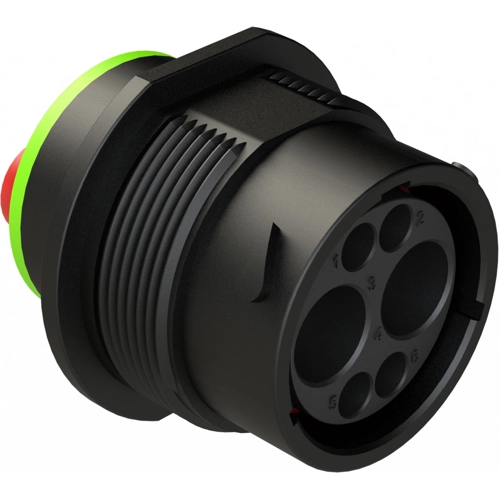 Size 18 Receptacle, 6 Positions, Pin, Standard Arrangement, Normal Seal, Smooth Ring Adapter.