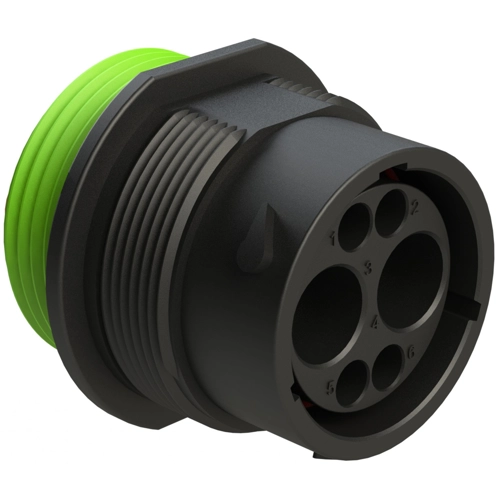 Size 18 Receptacle, 6 Positions, Pin, Standard Arrangement, Wide Thread Adapter.