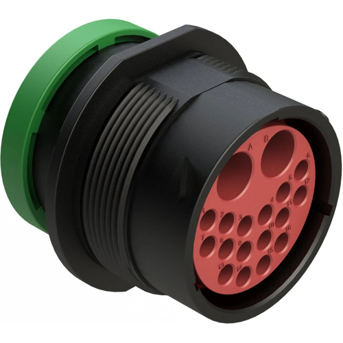 18 Position Receptacle, Pin, Shell Size 24, Normal Diameter Seal (Green), Backshell Ring Adapter.