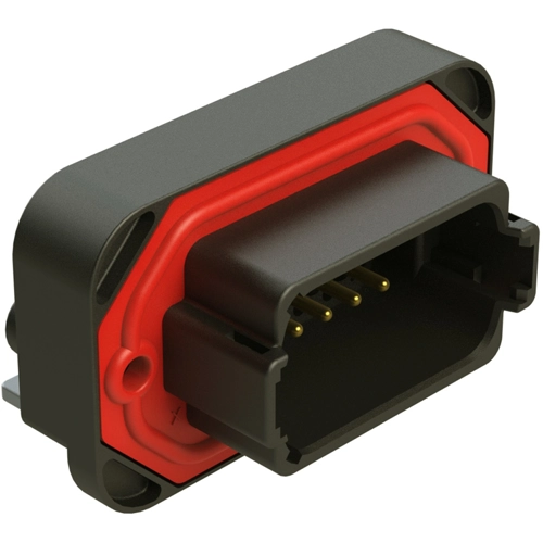 12 Positions, Right Angle, Flange Mount, PCB Receptacle, Potted, Black, Gold Plated Contacts Included, Keyed B.