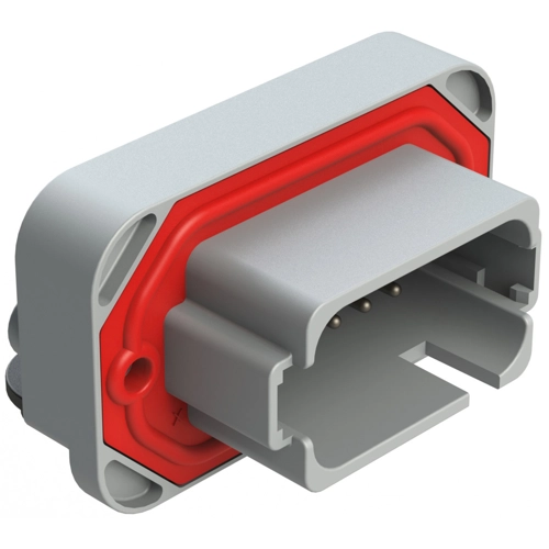 18 Positions, Right Angle, Flange Mount, PCB Receptacle, Tin Plated Contacts Included, Potted, Keyed A, Grey.