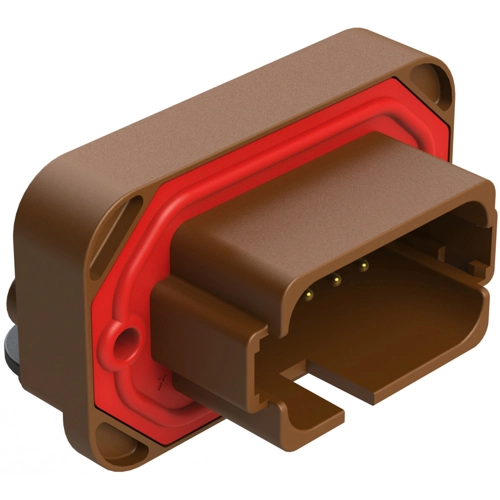 18 Positions, Right Angle, Flange Mount, PCB Receptacle, Gold Plated Contacts Included, Keyed D, Brown.